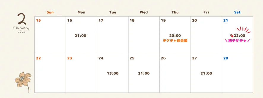 \ 2月21日(土)22:00〜初チケチャ🤎/